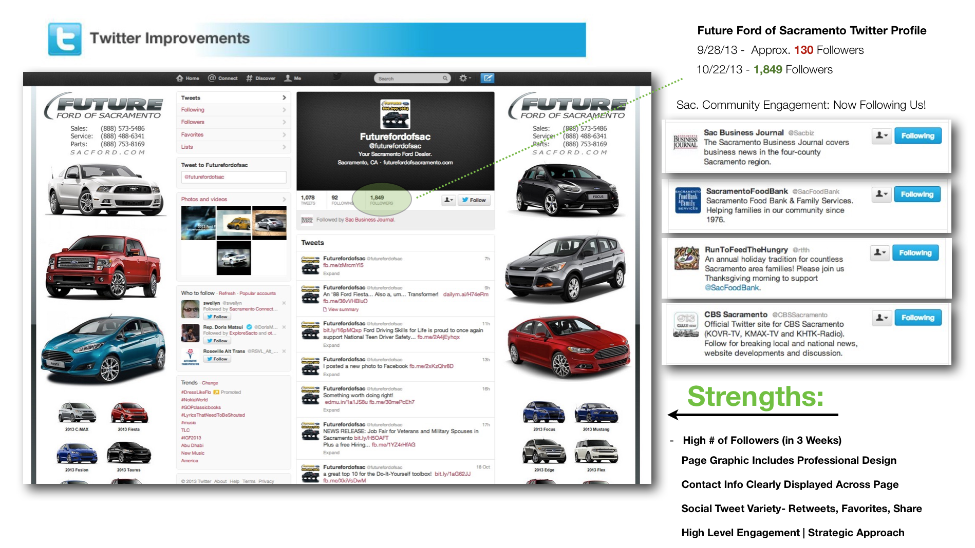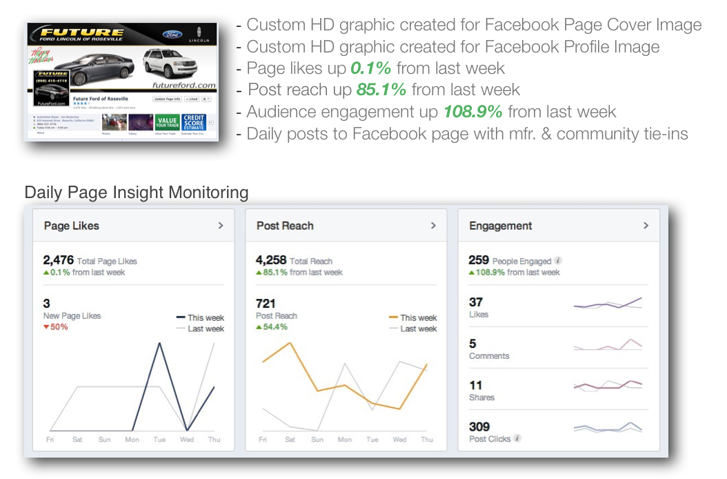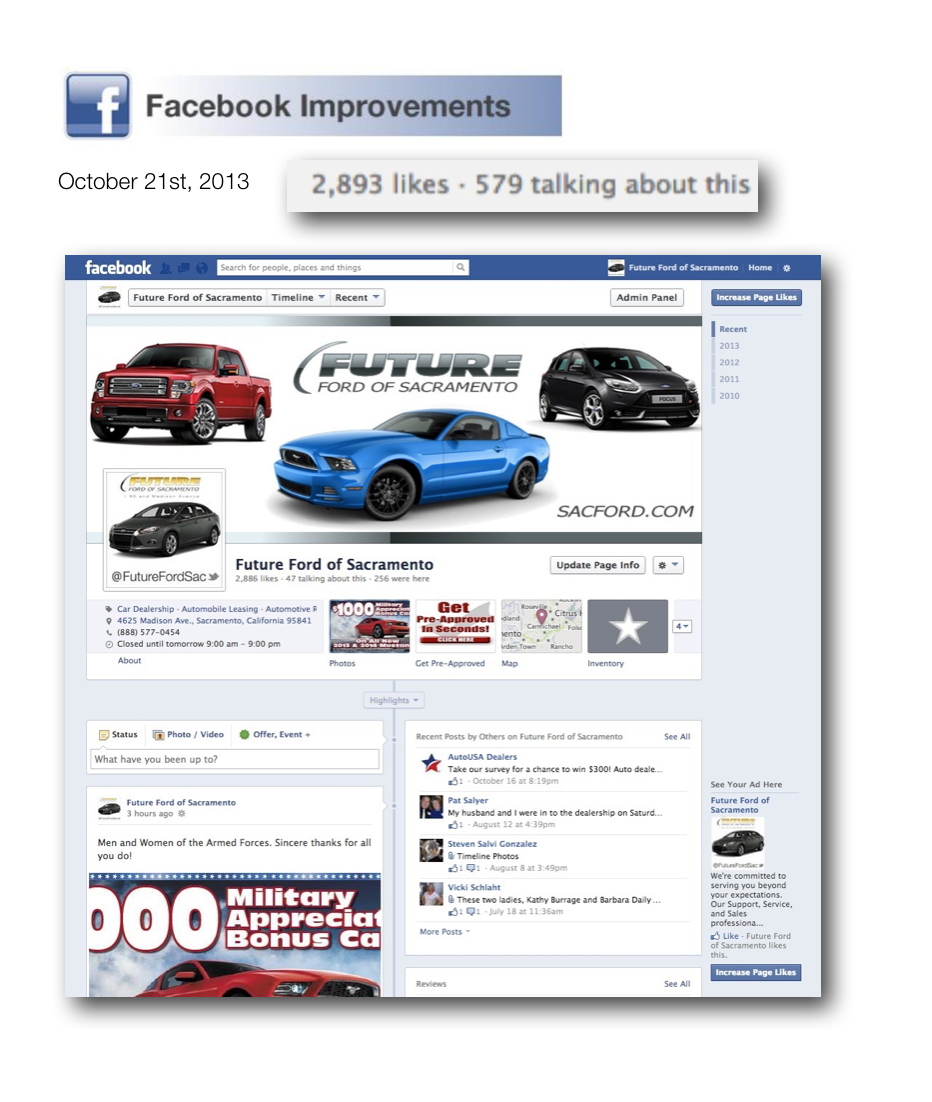 Overhaul and improve the car dealership’s web and social media content, increase user engagement and lead response via integrated custom web apps and targeted online marketing campaigns. Improve local brand perception and social media authenticity.